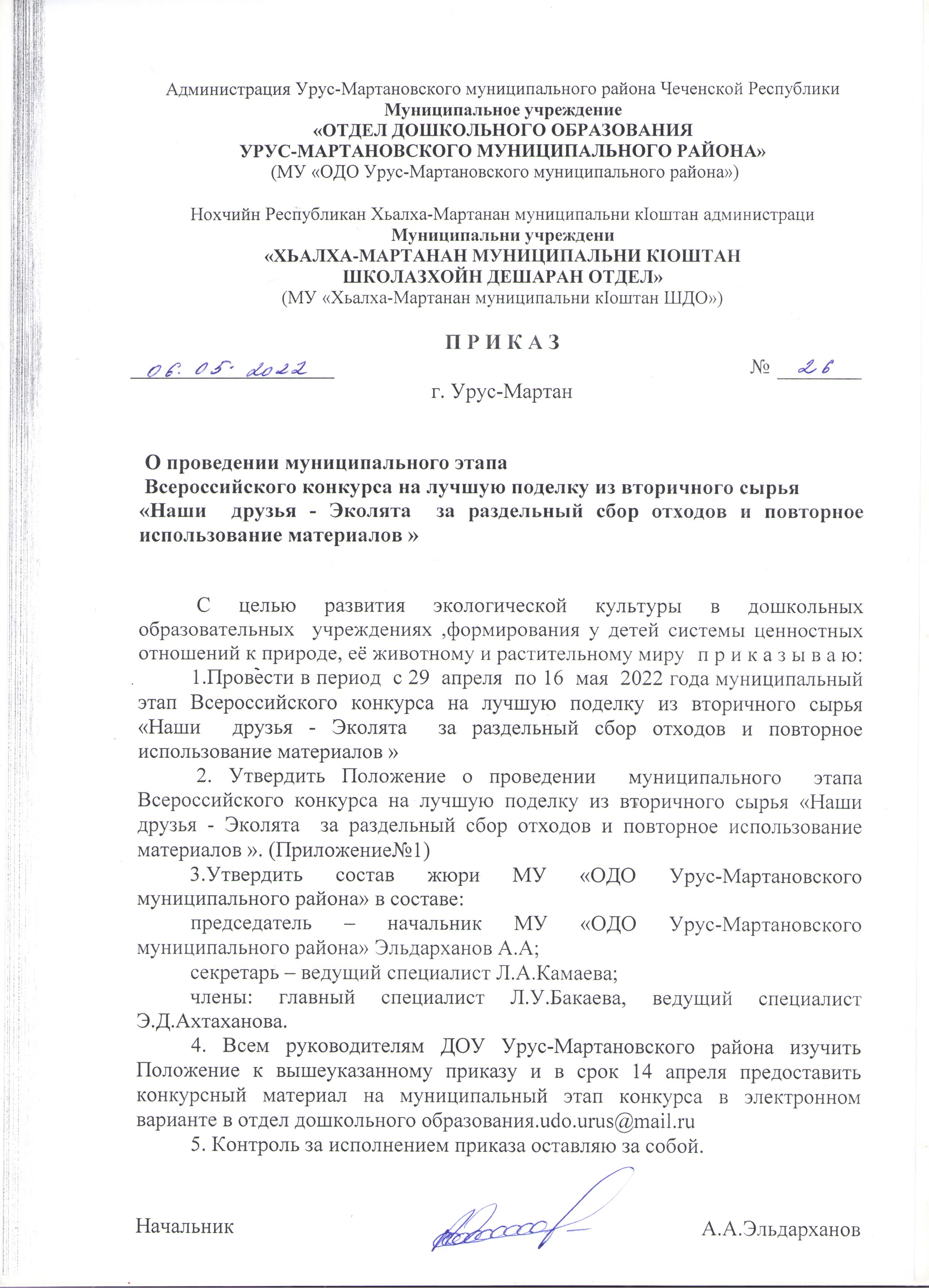 Приказ о проведении муниципального этапа конкурса «Нохчийн мотт – берийн ирсе кхане»