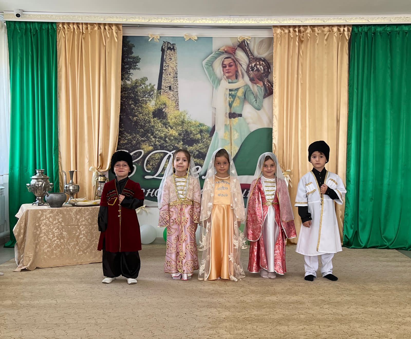 Тематические беседы проводились с детьми средней и старшей группы. Дети с большим удовольствием прочитали стихи, исполняли песни, показывали сценки. А во время беседы были затронуты вопросы, глубоко волнующие каждого из нас. Была дана оценка роли женщины в чеченской семье. В первую очередь, мы судим о людях по их моральному облику, который должен соответствовать канонам Ислама и требованиям Сунны. Поэтому, на матери лежит огромная ответственность за воспитание ребёнка в семье, именно она закладывает первооснову в характере и поведении детей, помогает им определиться со своими жизненными принципами. Являясь хранительницей семейного очага, она в то же время учит своих детей всем премудростям и тонкостям жизни, умению налаживать добрые отношения со всеми людьми. Образцом для всех благочестивых женщин – матерей являются жизненные примеры жён пророка Мухаммада (мир и благословение Аллах1а ему) о которых в Священном Коране сказано, что «…они являются матерями правоверных».
